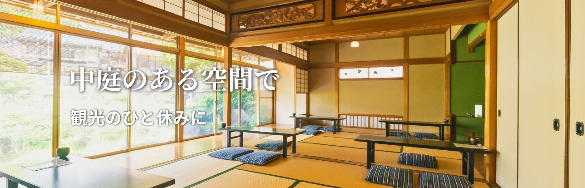 郡上八幡観光の合間に、ひと息つける場所をお探しなら。 宗祇庵は、名水百選「宗祇水」のすぐ奥にある古民家カフェです。 店舗横には小駄良川が流れ、川の音を感じながら過ごせる空間。 中庭を眺める落ち着いた席で、観光の途中の休憩にご利用いただけます。 店内では岐阜県産の抹茶や、こだわりのコーヒーもご用意しており、 観光の合間に気軽に立ち寄れるカフェとしてご利用いただけます。 暑い季節でも店内は空調を整えており、 郡上散策の合間に立ち寄れる涼しい休憩スポットとしてもおすすめです。